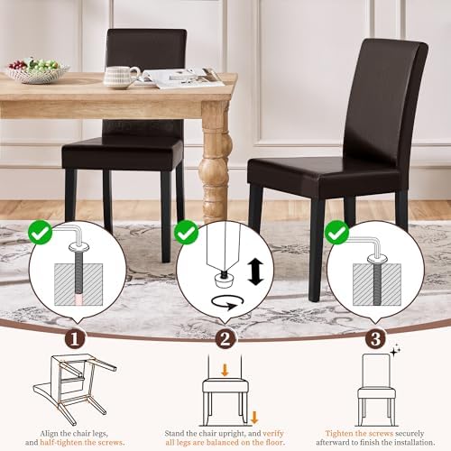 Yaheetech Dining Chairs Set of 4 PU Leather Dining Room Chairs with Waterproof Surface and Wood Legs for Kitchen Restaurant and Living Room, Dark Brown